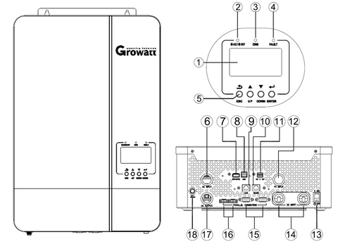 Growatt MPPT 5KW 48V Off Grid Solar Panel Inverter With 15kwh Battery and 5kw Panels